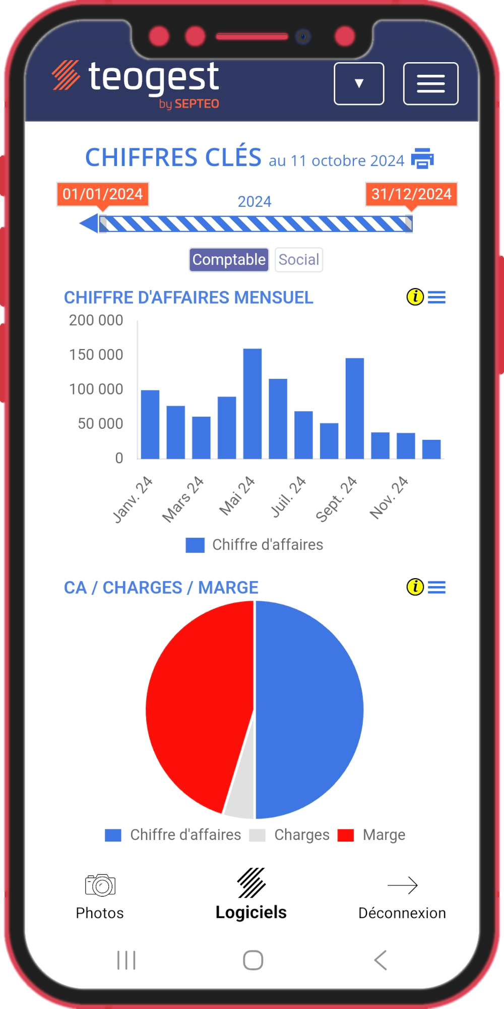 Nos logiciels sont entièrement « responsive design » et notre application gratuite permet à tous les collaborateurs des cabinets clients de Teogest, ainsi qu'à leurs propres clients disposant d'identifiants, d'accéder à toutes les fonctionnalités disponibles.
