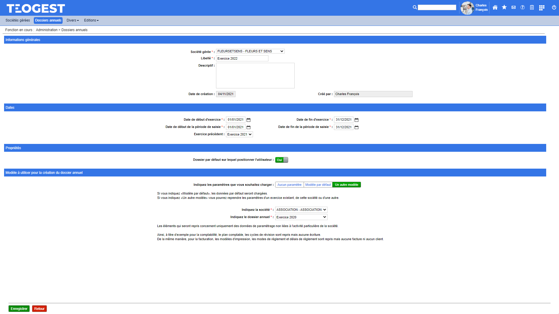 Création et modification d'un dossier annuel
