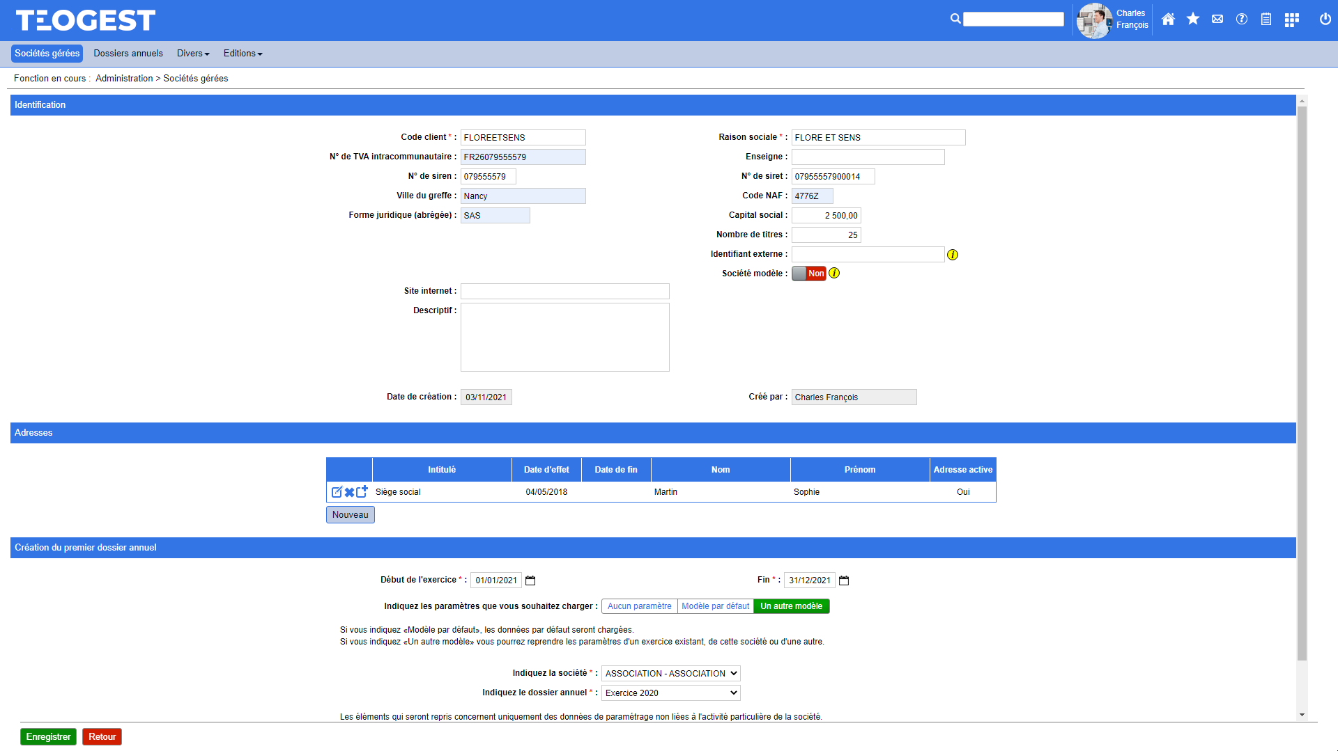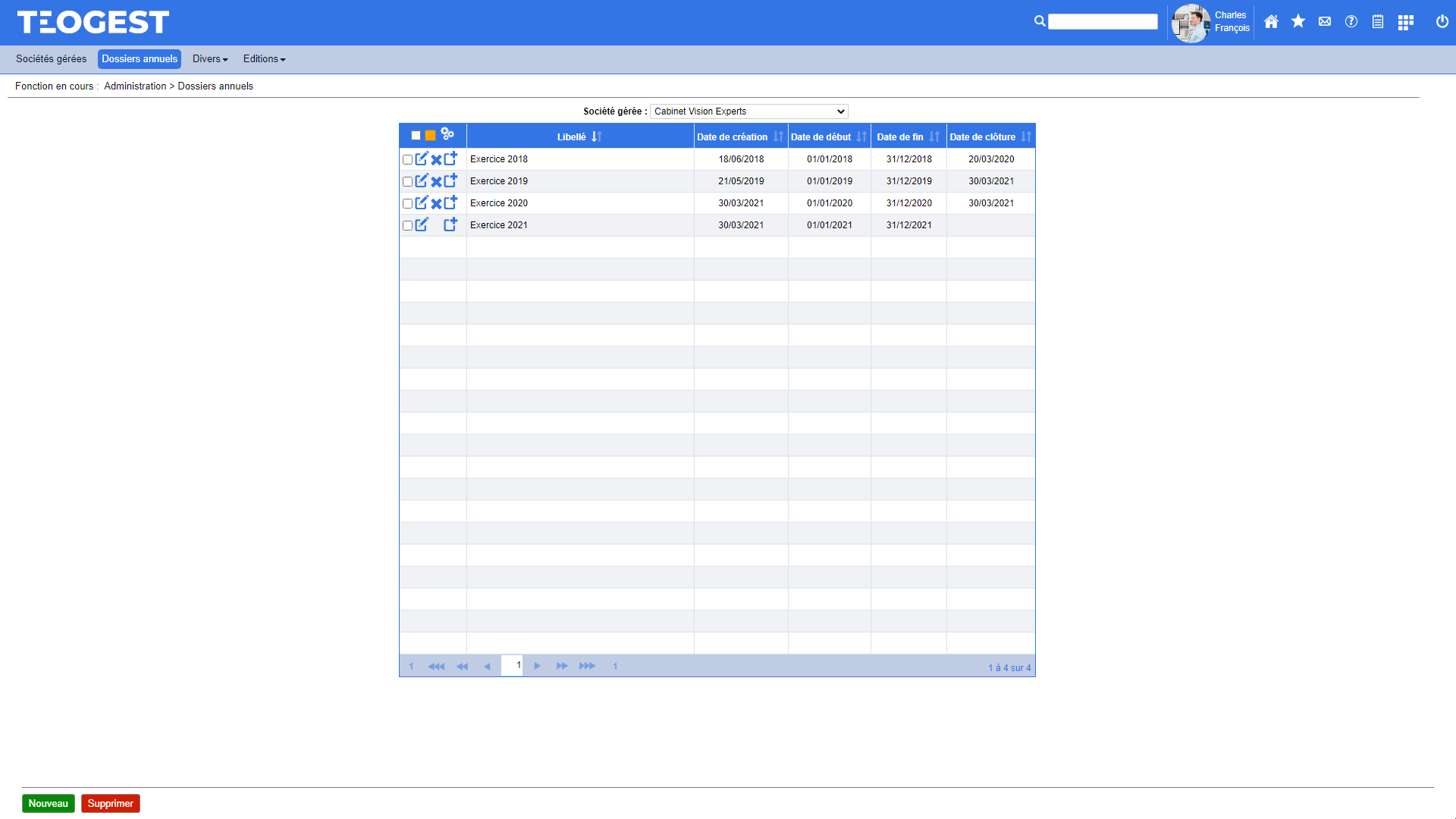 Chaque société gérée peut disposer de plusieurs dossiers annuels dont les données sont totalement indépendantes.