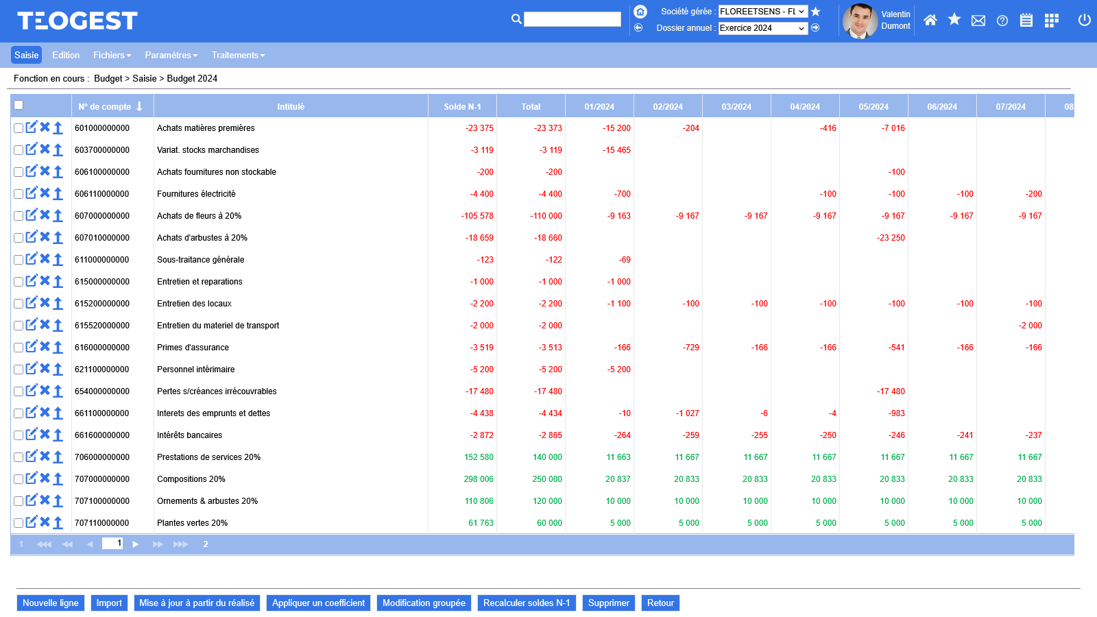 - Application d'un coefficient à une ligne ou une série de lignes budgétaires