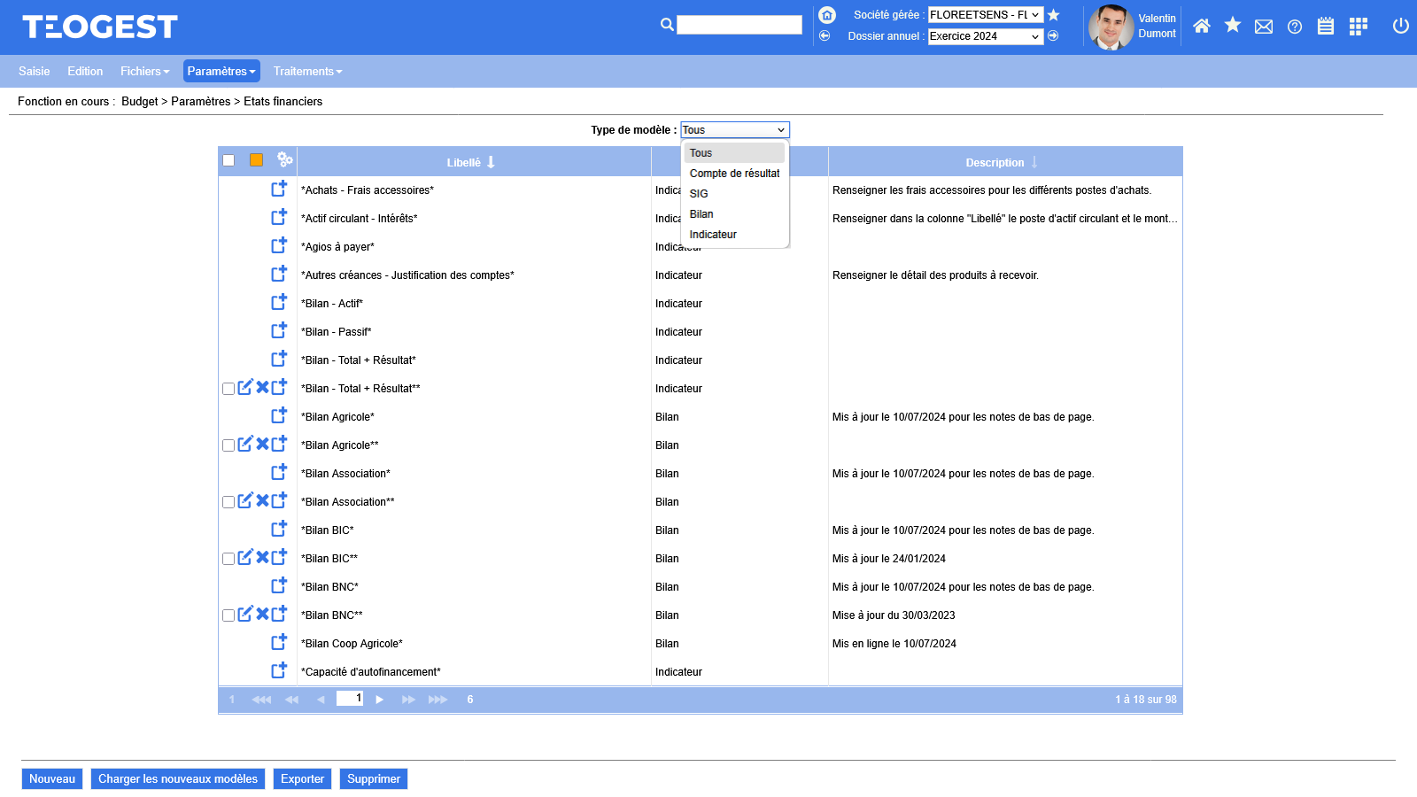 - Export des modèles d'états financiers vers les autres dossiers (sociétés gérées)