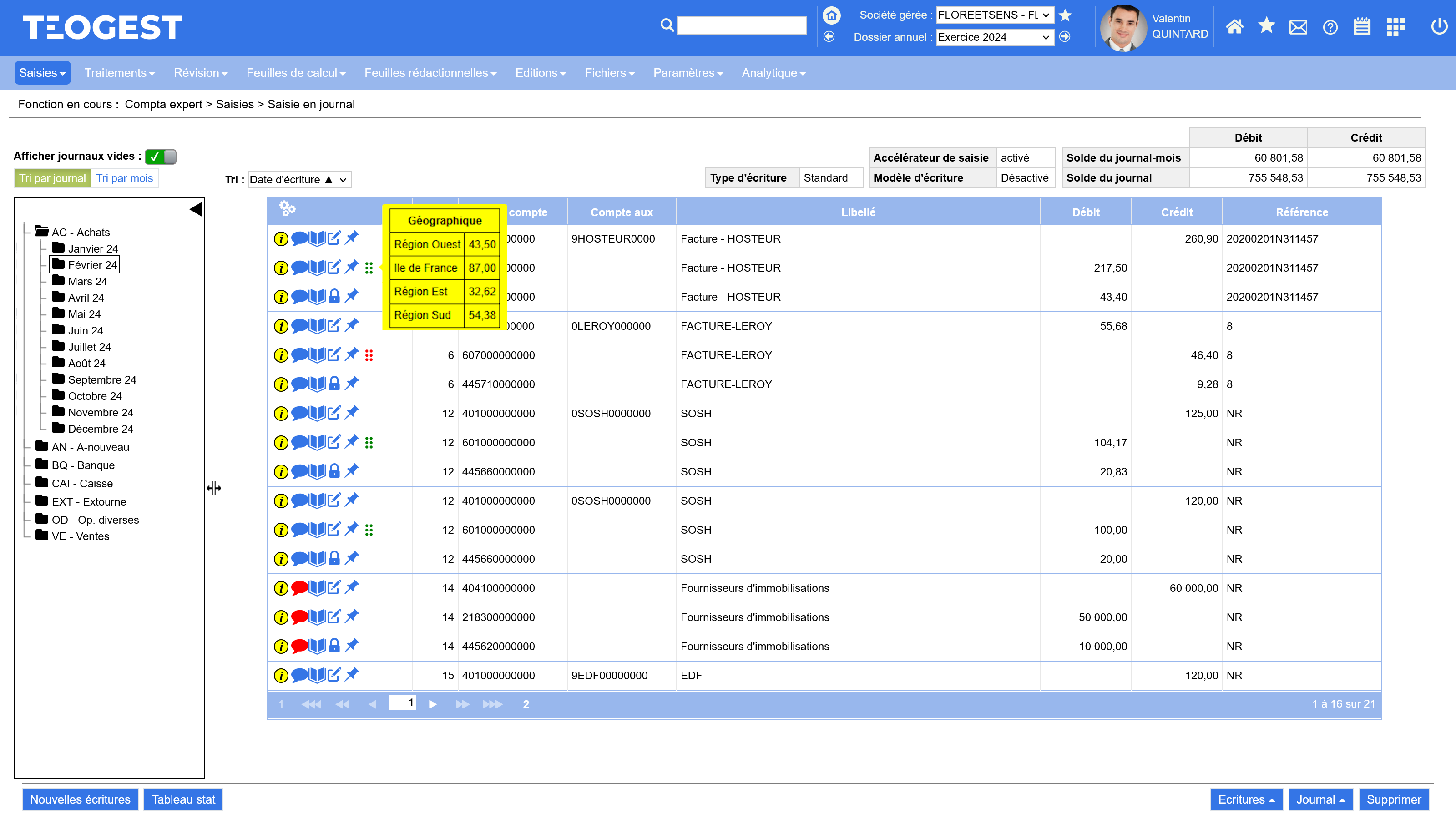 - Date de dernière modification et nom de l’utilisateur ayant effectué la modification (si l’écriture a été modifiée)