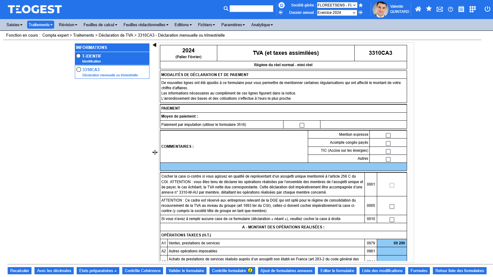 Télédéclaration de la TVA avec génération des ordres de paiement