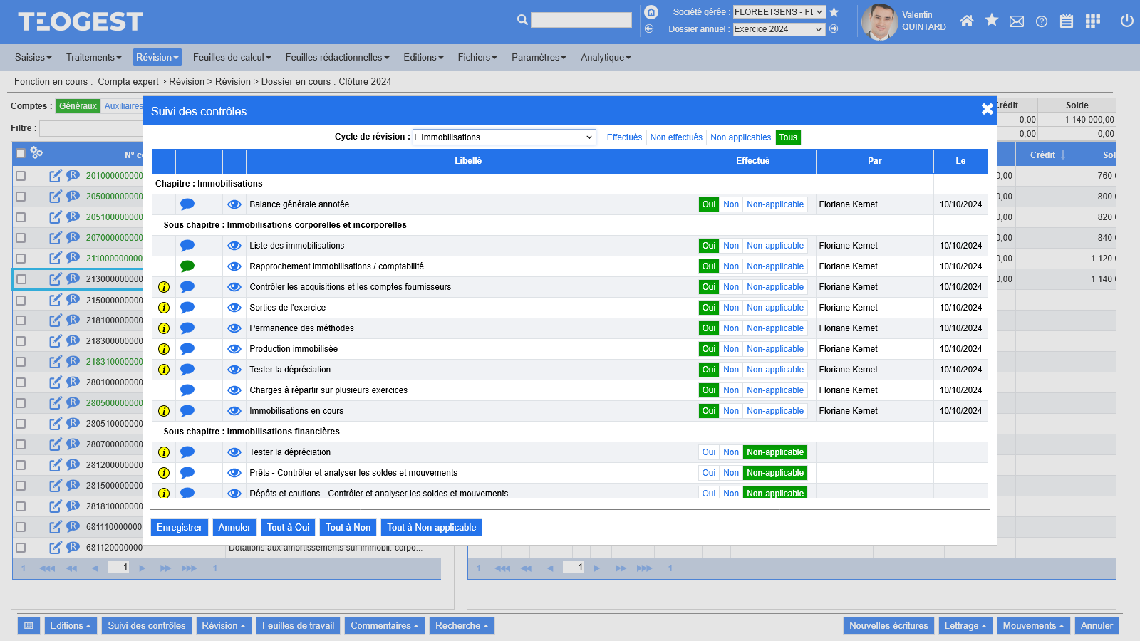 Gestion des cycles de révision avec contrôle de l'exhaustivité de l'affectation des comptes aux cycles