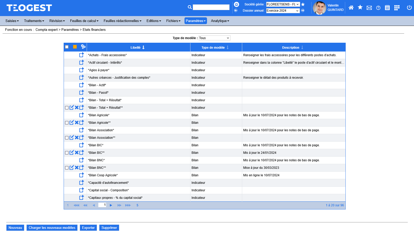 - Export des modèles d'états financiers vers les autres dossiers (sociétés gérées) avec gestion des versions