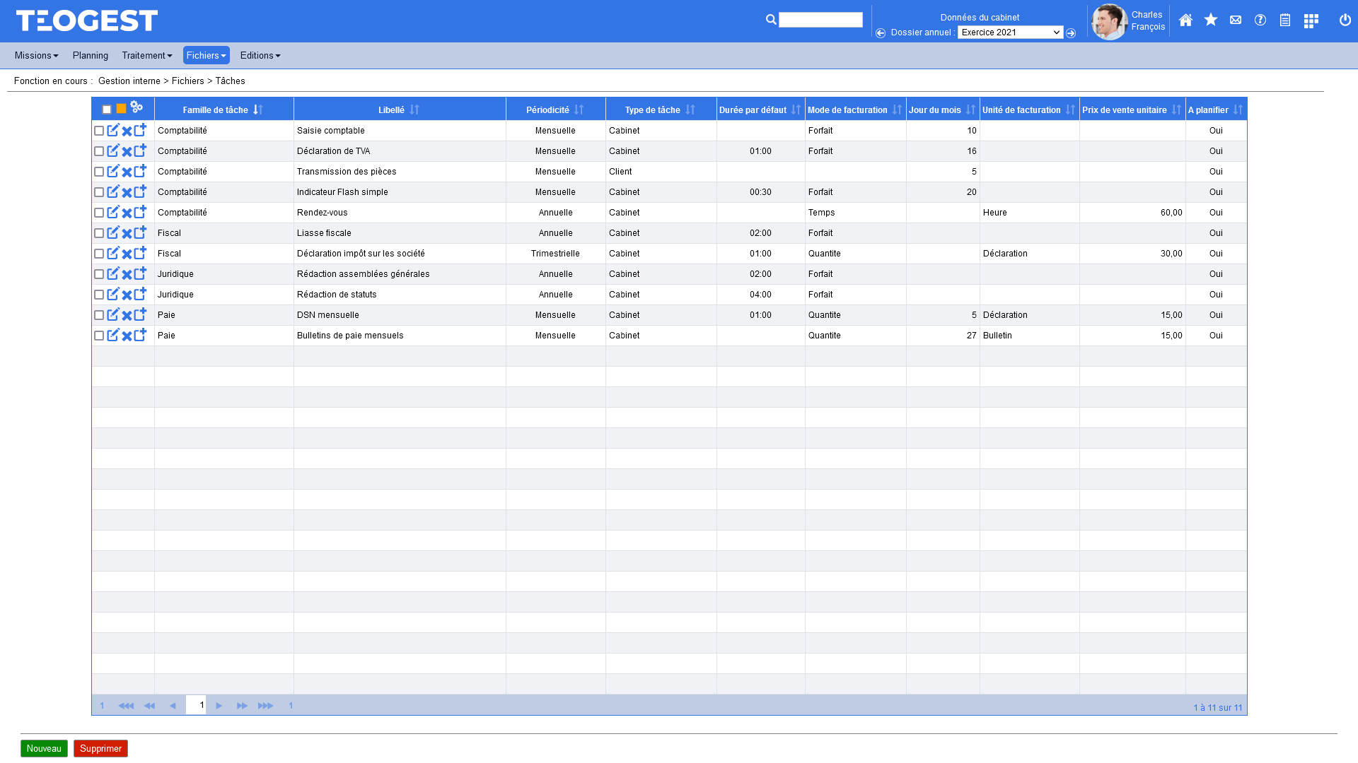- Informations générales (tâche client ou tâche cabinet, durée par défaut, etc.)