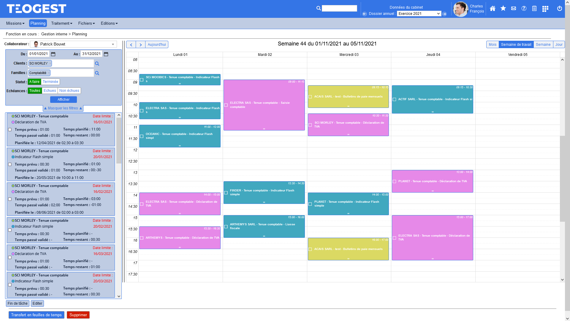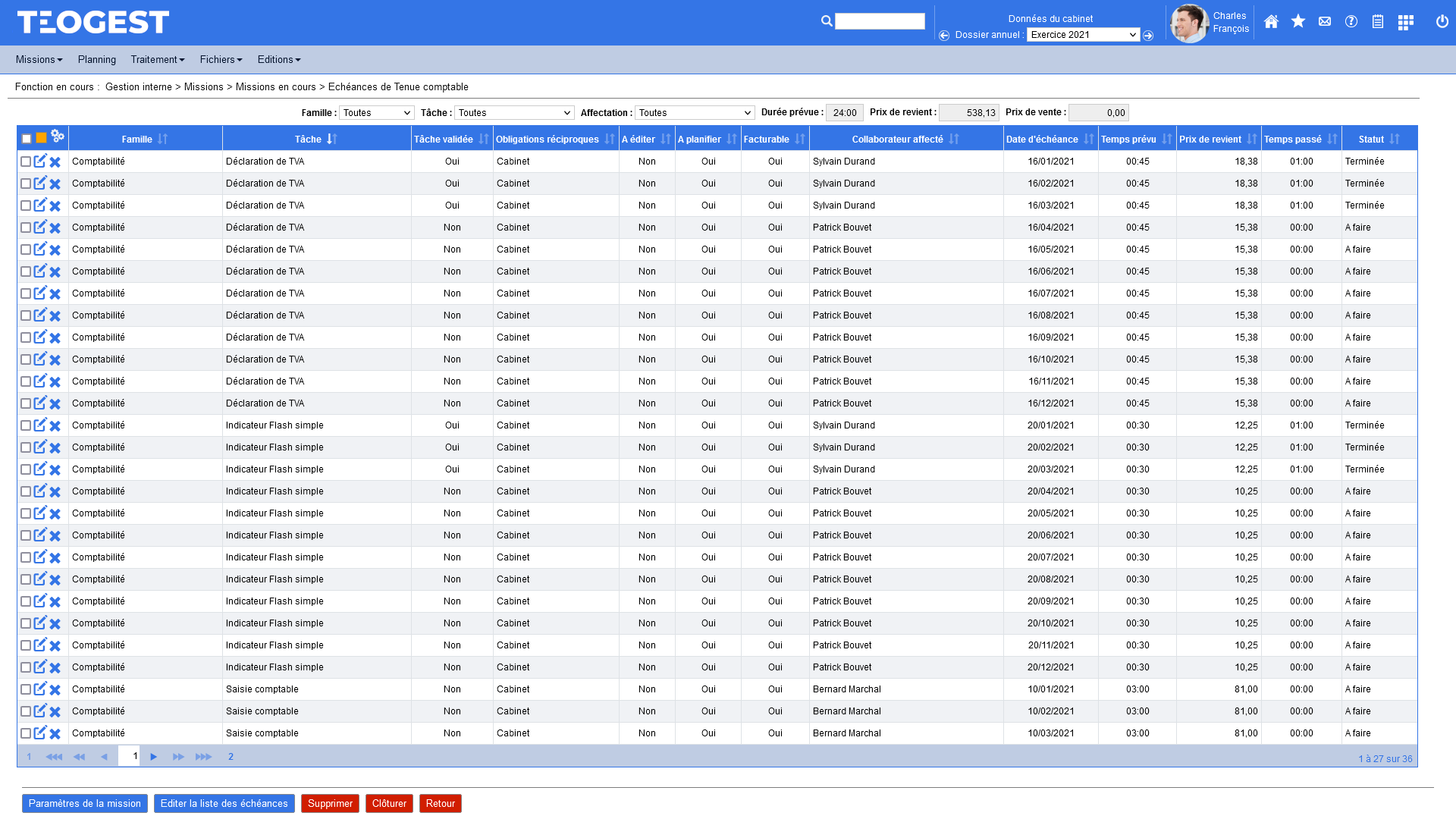 En se fondant sur les temps affectés aux missions et aux groupes de travail constitués, le logiciel de Gestion interne de Teogest permet de réaliser en première étape le planning de production du cabinet.