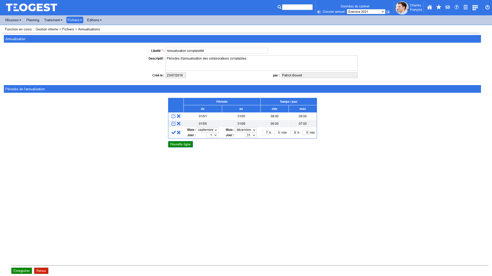 - Annualisations (définition des périodes de travail des collaborateurs)