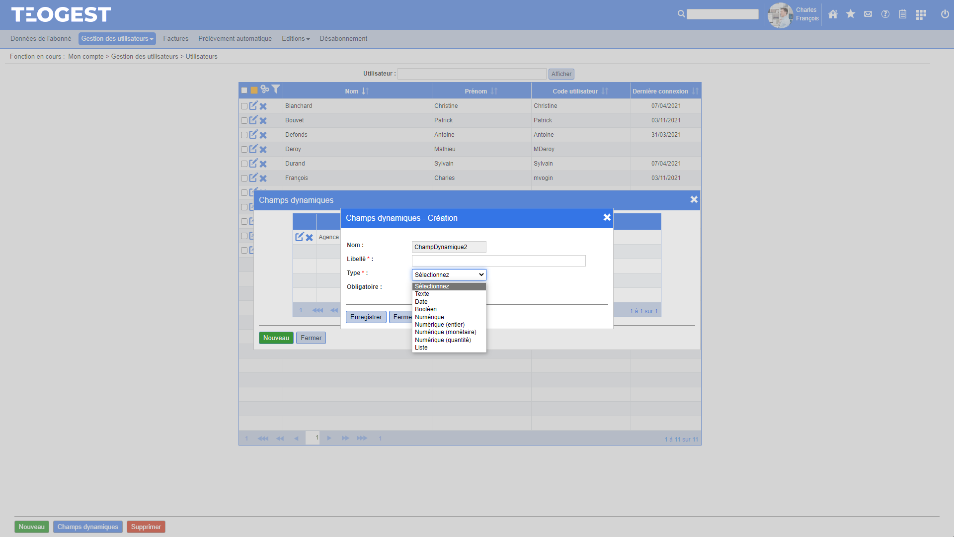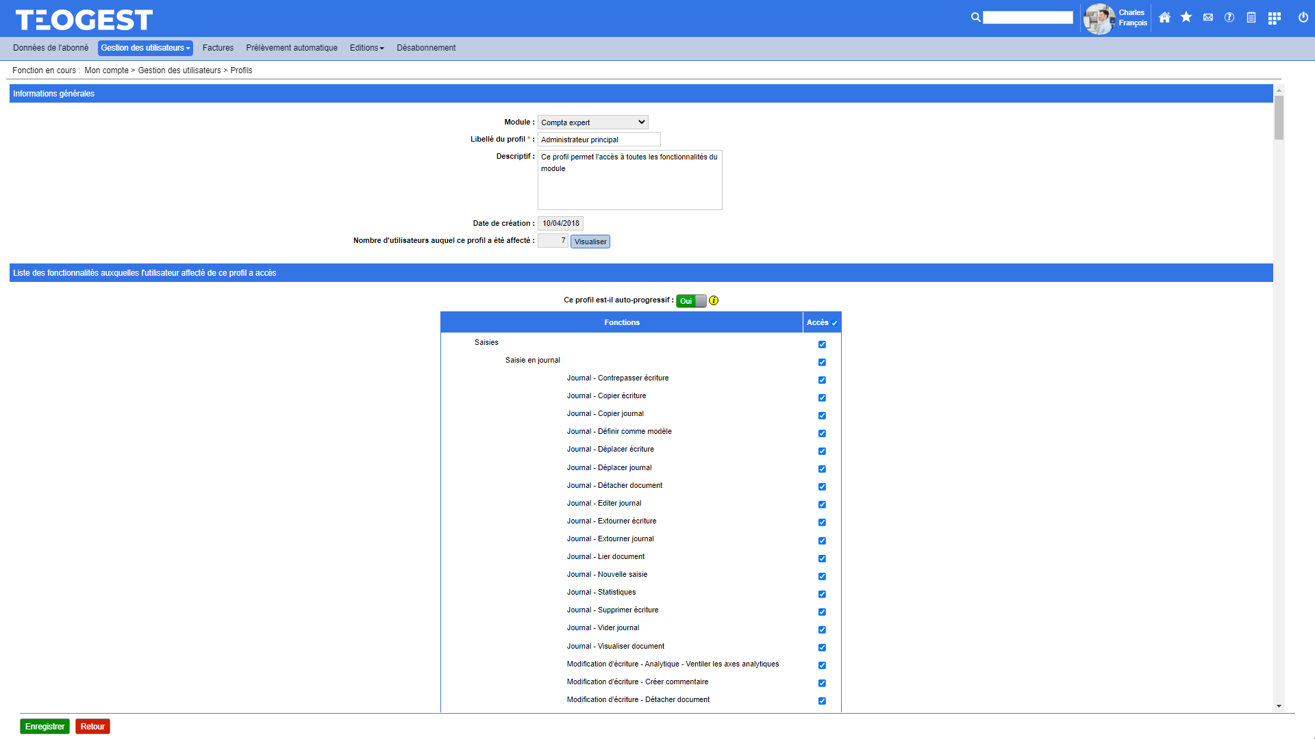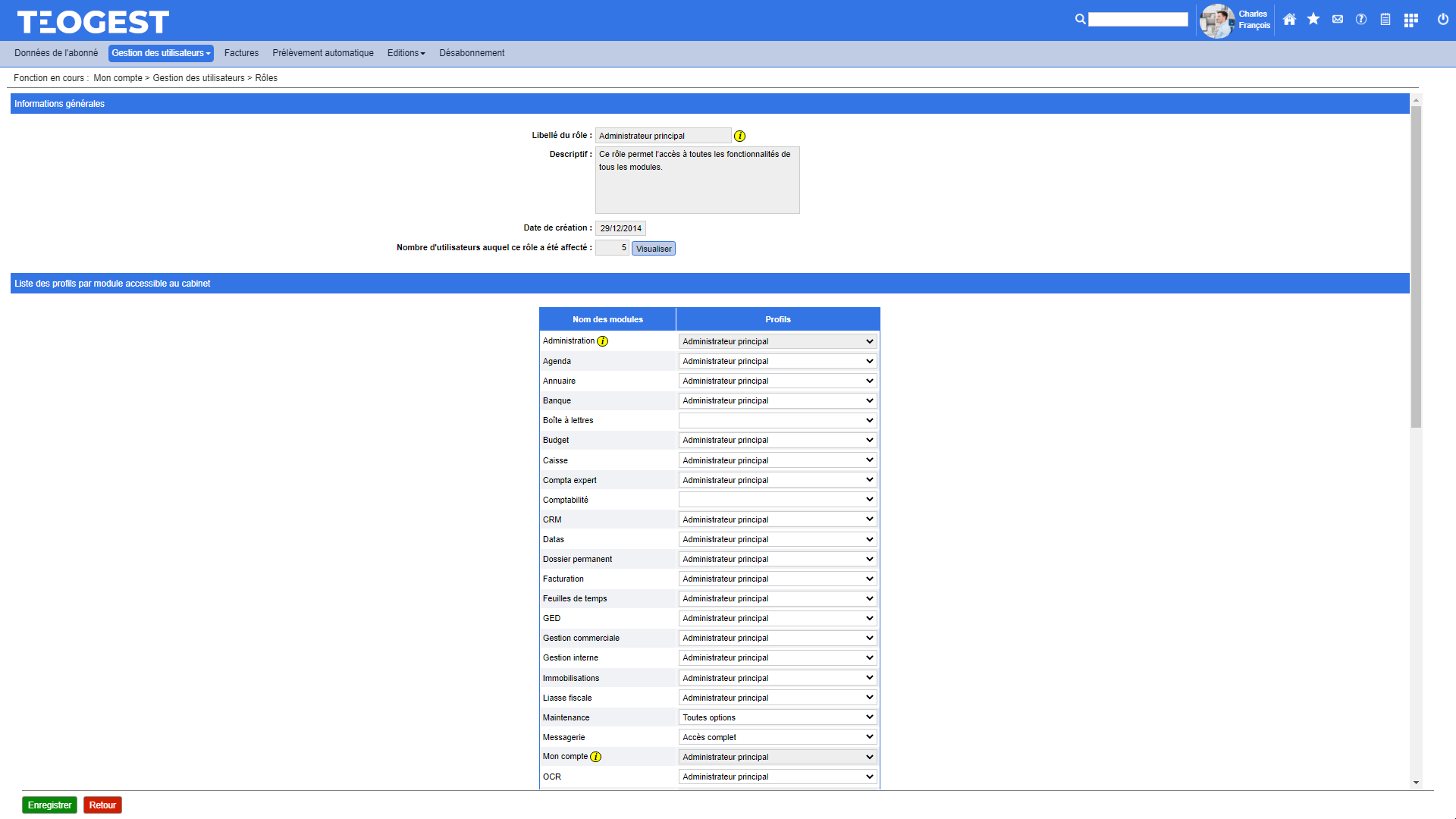 L'ouverture d'un accès à un module pour un utilisateur entrainant une facturation de la part de Teogest, il est essentiel que ce paramétrage puisse être visualisé et modifié à tout moment et de manière très précise.