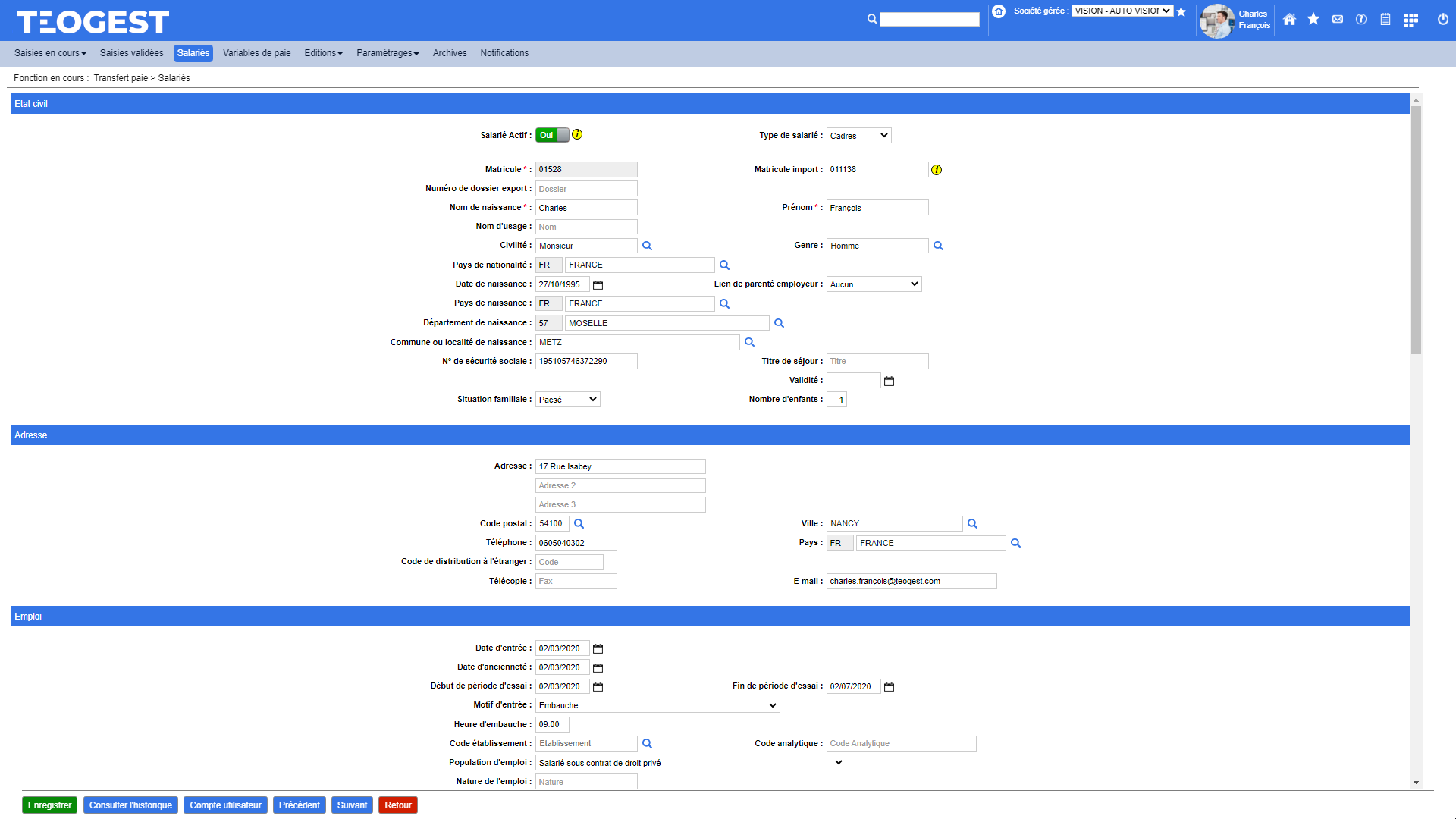 - Création et modification d'un salarié